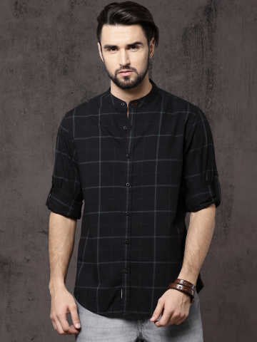 Classic mens plaid flannel shirt with long sleeves, in chequered style, with two chest pockets.
